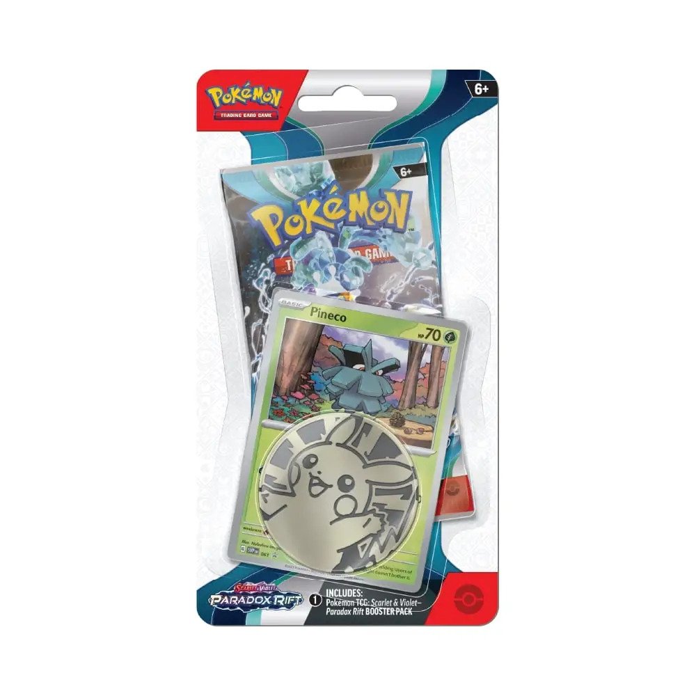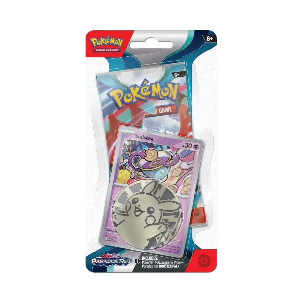 Potopite se v oblaki in raziščite deželo, ki se zdi, da ni vezana na čas! Z divjimi napadi se pojavljajo starodavni Pokémoni, kot so Roaring Moon ex in Sandy Shocks ex, skupaj s prihodnjimi umetnimi Pokémoni, kot sta Iron Valiant ex in Iron Hands ex. Hkrati se Garchomp ex, Mewtwo ex in drugi Terastalizirajo za pridobitev novih tipov, medtem ko se Armarouge ex, Gholdengo ex in drugi Pokémoni ex pridružujejo bojišču. Pustolovščina čaka, ko se časovnice trčijo v razširitvi Pokémon TCG: Scarlet & Violet—Paradox Rift!